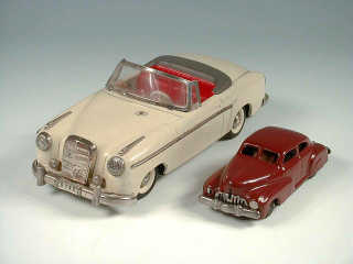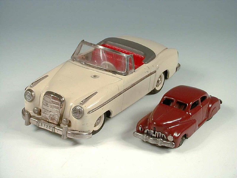 longueur 14 cm - moteur à clef (fonctionne) - en action, une pression sur l'un des pare-chocs fait changer le sens de la marche