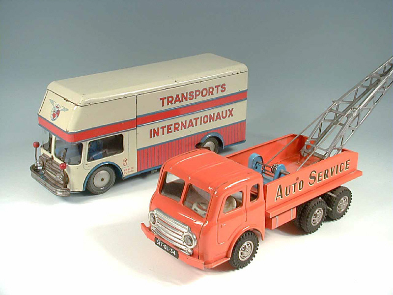 longueur 33 cm - moteur à ressort (fonctionne) - phares & essui-glaces électriques - avec chauffeur & guide-ânes - manque portes arrière & capot du logement de pile