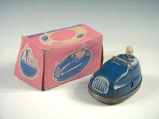 longueur 10 cm - moteur à clef (fonctionne) - la tête du conducteur est en latex - détails effectués au pochoir