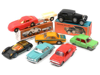 états de 'A' à 'C' - miniatures reproduisant notamment les modèles : FERRARI, LADA, MERCEDES & PANHARD - 2 véhicules avec boîte des marques NOVOEXPORT (moule du modèle NOREV) & IGRA (REPUBLIQUE TCHEQUE)