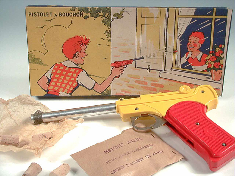 J.A. PARIS (FRANCE) AIR-LUX Pistolet à bouchon jaune, rouge & chromé