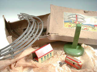 moteur à clef (fonctionne) - complet dans les emballages d'origine - les rails constituent un circuit aérien axé sur une tour - clef