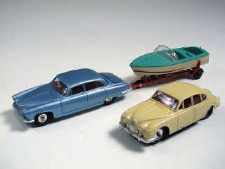 DINKY TOYS (GB) 796 HEALEY SPORTS BOAT avec remorque orange, crème & vert