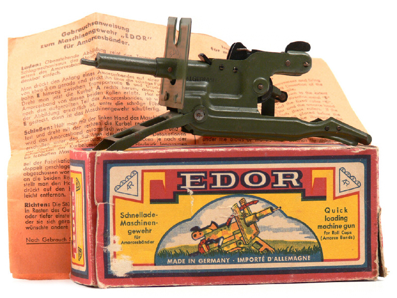longueur 16 cm - avec trépied avant réglable & système de tir par ruban d'amorces (fonctionne) - notice - petites traces d'oxydation sur quelques parties nickelées