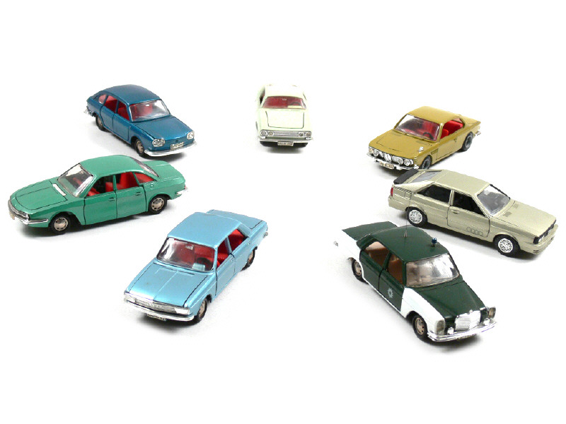 miniatures reproduisant les modèles : AUDI, VOLKSWAGEN, FORD, NSU, MERCEDES & BMW - un véhicule de la marque CONRAD - une voiture avec roues non d'origine