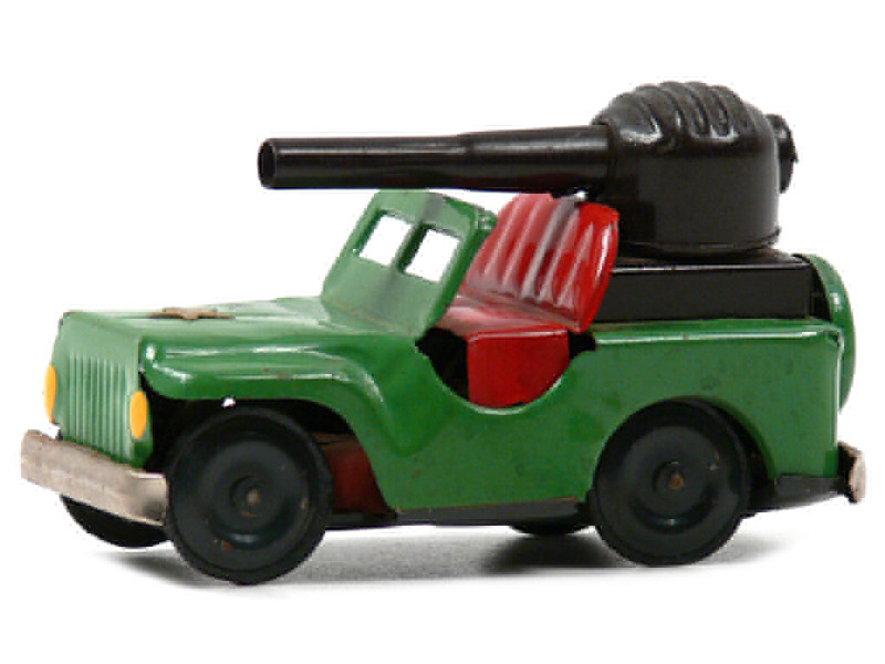 DIVERS (JAPON) JEEP avec canon en tôle peinte vert & rouge