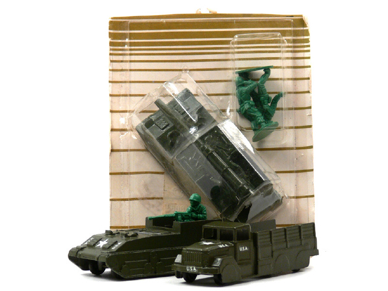 comprend : un camion à ridelles, un engin blindé & un canon automoteur (sous blister en état 'd' jamais déballé) - avec 3 figurines