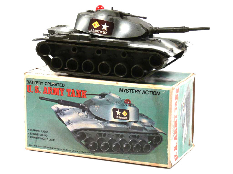 longueur 24 cm - moteur à piles (fonctionne) - avec bruiteur & gyrophare - une fêlure sur la tourelle