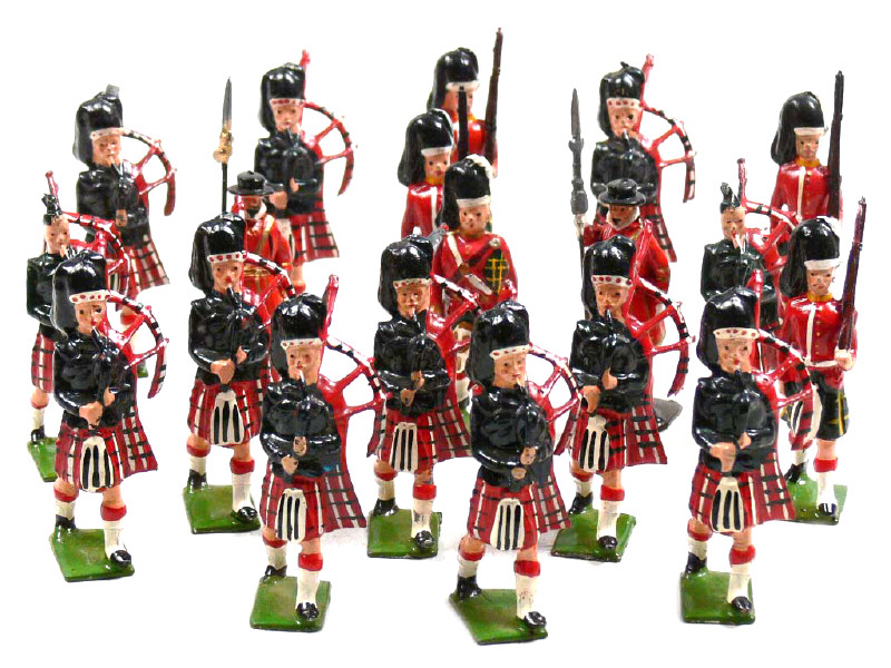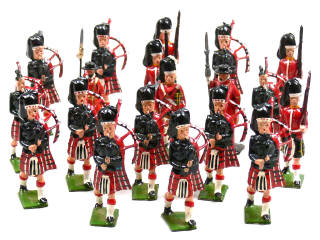 états de 'B' à 'C' - PRODUCTION ORIGINALE - comprend : 12 joueurs de cornemuse, 4 soldats avec fusil sur l'épaule, 2 avec hallebarde & un officier
