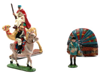 QUIRALU (FRANCE) Ensemble de 3 figurines, 2 montures & un bassour