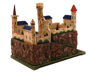 dimensions : 36 x 23 x 30 cm - tous les bâtiments qui se démontent, peuvent être rangés dans le socle - avec un canon sur roues - quelques petits manques