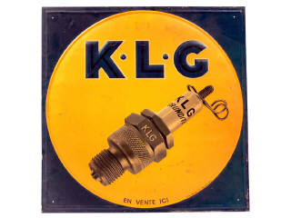 G. de ANDREIS (FRANCE) Plaque en tôle lithographiée 'K.L.G' jaune & bleu marine