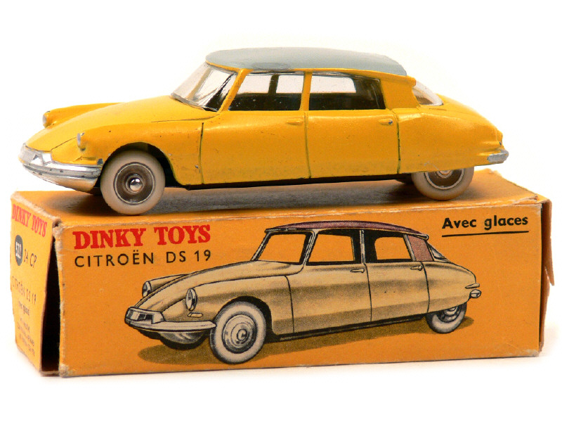 DINKY TOYS (FRANCE) 522 CITROËN DS 19 (version avec vitres & jantes concaves) jaune citron, toit gris clair