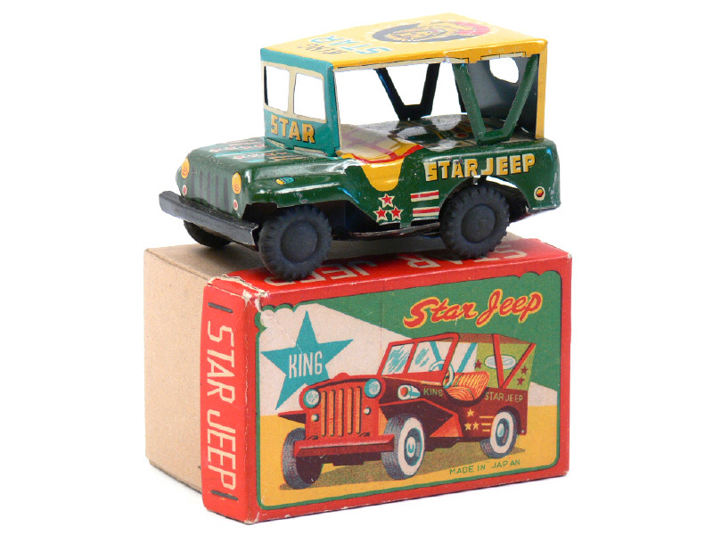 DIVERS (JAPON) STAR JEEP en tôle lithographiée vert, jaune & bleu ciel