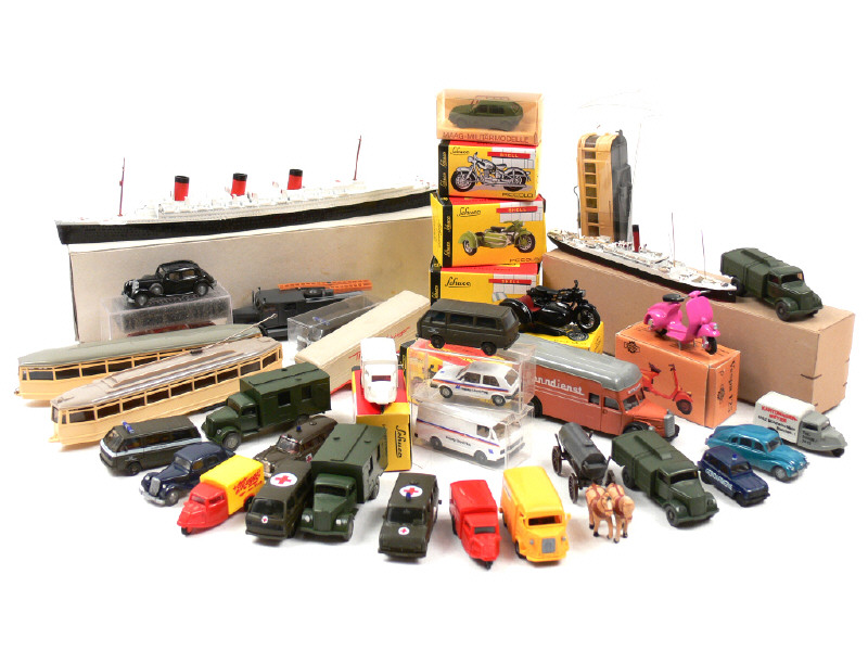 petites échelles - on y retrouve notamment les marques : SCHUCO, SCOTTOY, PRALINE, WIKING & MERCATOR - 15 modèles avec boîte