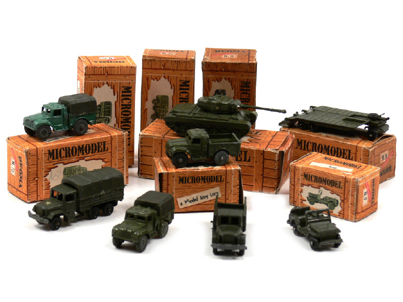 MICROMODEL (ITALIE) Ensemble de 7 véhicules & une remorque militaires kaki
