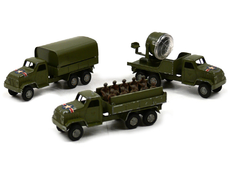 il s'agit d'une reproduction d'un modèle de la marque FRANCE JOUETS avec une modification de moule au niveau de la cabine du véhicule - manque soldats & une fixation de vitre