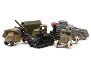 TOOTSIETOY (USA) Ensemble de 4 camions militaires, une automitrailleuse & un char
