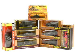 SOLIDO (FRANCE) Ensemble de 7 véhicules militaires & un camion de pompiers
