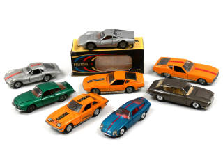 comprend : ALFA ROMEO 2600 TZ, JAGUAR PIRANA BERTONE, MASERATI GHIBLI (manque un autocollant de bas de caisse), ALFA ROMEO GIULIA 1600 SPORT, LANCIA FLAVIA SPORT (une fêlure sur le pare-brise), LAMBORGHINI ISLERO (quelques autocollants non d'origine), ALFA ROMEO GUILIA TZ (un autocollant non d'origine) & DINO PININFARINA (avec boîte)