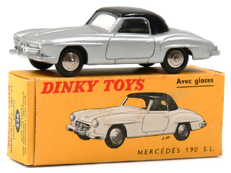 DINKY TOYS (FRANCE) 526 MERCEDES 190 SL (version avec vitres & jantes convexes) gris métal, toit noir