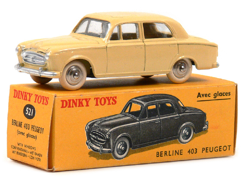 DINKY TOYS (FRANCE) 521 PEUGEOT 403 (version avec vitres & jantes convexes) jaune paille