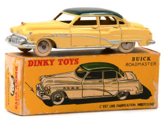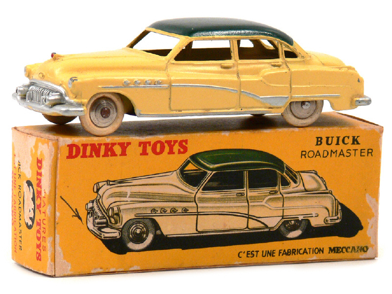 DINKY TOYS (FRANCE) 24V BUICK ROADMASTER (version avec intérieur de toit lisse & jantes chromées) jaune paille, toit vert foncé