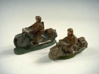 FIGURINES en composition Motocycliste militaire marron & gris vert
