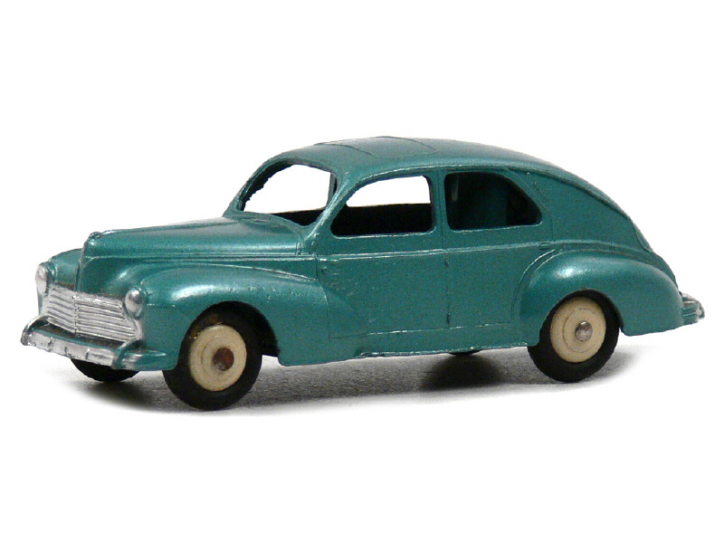 DINKY TOYS (FRANCE) 24R PEUGEOT 203 Petite lunette arrière (version avec intérieur de toit & ailes lisses) bleu métal, jantes crème