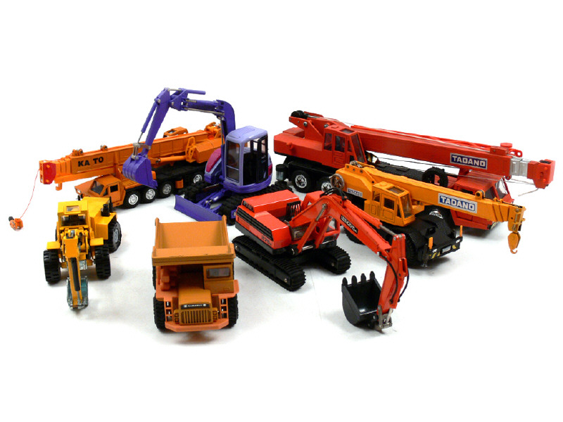états de 'A' à 'B' - miniatures reproduisant notamment les modèles : TADANO, KOMATSU, ZETTELMEYER, IHI & KATO - on y retrouve notamment les marques : YONEZAWA TOYS DIAPET, SHINSEI & SIKU - quelques petits manques