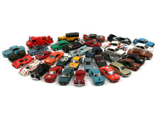 états de 'A' à 'B' - miniatures reproduisant notamment les modèles : BMW, RENAULT, FORD, CITROEN, OPEL, PORSCHE, ABARTH, FIAT, MERCEDES, JEEP & PEUGEOT- plusieurs véhicules transformés &/ou repeints - quelques petits manques