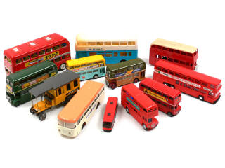 différentes échelles - états de 'A' à 'B' - miniatures reproduisant notamment les modèles : AEC, NEOPLAN & BÜSING - on y retrouve notamment les marques : CORGI TOYS, RIETZE, CKO, CURSOR MODELL, OK, YONEZAWA TOYS DIAPET, SOLIDO & SNIC - un véhicule repeint - quelques petits manques