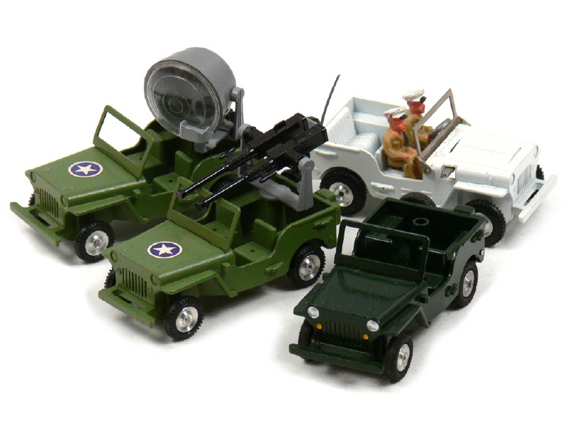 avec mitrailleuses de capot rétractables (mécanisme fonctionne) & 2 militaires - on y joint une JEEP repeinte de la marque avec accessoires manquants