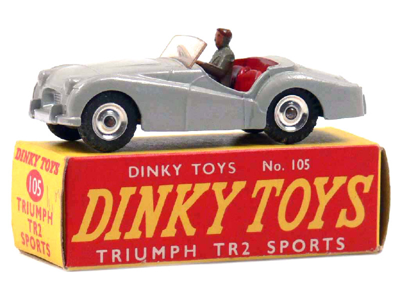 DINKY TOYS (GB) 105 TRIUMPH TR2 gris, intérieur rouge, jantes aluminium