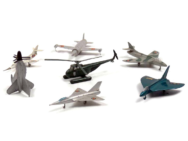 états de 'B' à 'D' - miniatures reproduisant les modèles : CONVAIR XFY-1 (version sans roulette stabilisatrice), LEDUC 021, HAWKER HUNTER, SKYRAY, FAIREY DELTA, DOUGLAS D559-2 & SIKORSKY S55 (pales légèrement déformées)