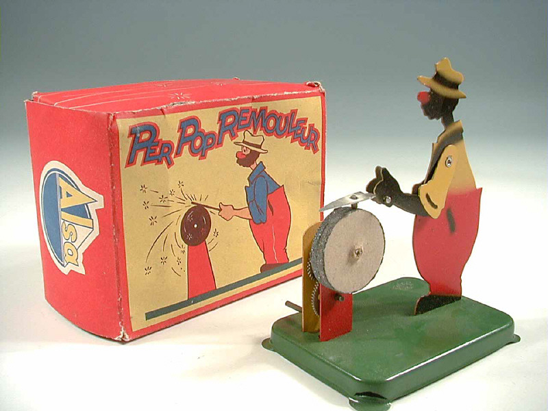 ALSA (FRANCE) Rémouleur mécanique en tôle peinte rouge, jaune & vert