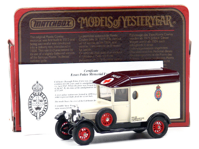 CREAKS OF CAMBERLEY (GB) AC143 MORRIS LIGHT Van 'COLCHESTER POLICE AMBULANCE' blanc, noir & violet foncé