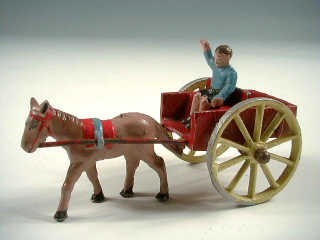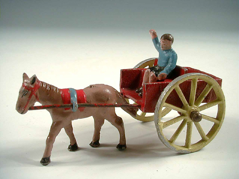 QUIRALU (FRANCE) Voiturette avec enfant tirée par un poulain rouge & jaune