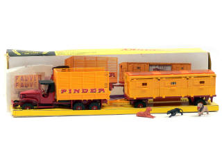 DINKY TOYS (FRANCE) 881 GMC 'PINDER' avec remorque-cage à fauves rouge & jaune