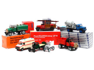 miniatures reproduisant notamment les modèles : MAN, FIAT, MAGIRUS DEUTZ, VOLVO & HENSCHEL - on y retrouve les marques : CONRAD, NZG & RW MODEL - quelques boîtes en état 'c'
