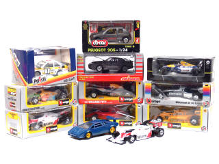 échelle entre 1/23 & 1/25ème - miniatures reproduisant les modèles : AUDI, PORSCHE, LAMBORGHINI, Mc LAREN, BENETTON-FORD, FERRARI, LOTUS-HONDA, WILLIAMS, PEUGEOT, BRABHAM & MASERATI - on y retrouve les marques : BBURAGO, POLISTIL, CB.CAR, MIRA, MAJORETTE, ONYX & HOT WHEELS - quelques boîtes en état 'c'