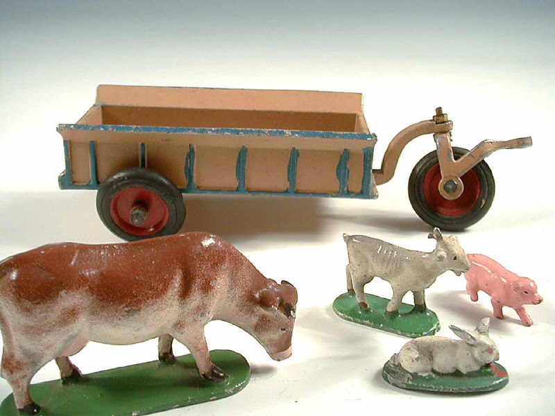 QUIRALU (FRANCE) Grande remorque fourragère à 3 roues beige & bleu