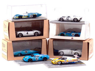 miniatures reproduisant les modèles : MATRA, FORD, WM, CUNNINGHAM & PANHARD-RIFFARD - 2 surboîtes manquantes