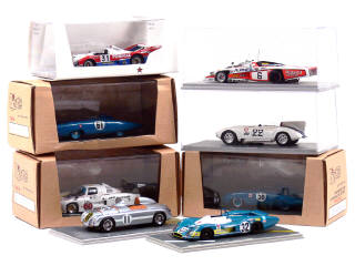 miniatures reproduisant les modèles : NASH HEALEY, CUNNINGHAM, DOME, MATRA SIMCA, LOLA, PANHARD, PANHARD-RIFFARD & MAZDA - 3 surboîtes manquantes
