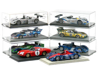 miniatures reproduisant les modèles : MG-LOLA, LOLA, LIGIER, COURAGE, ISO, VAILLANTE & CHRYSLER - un véhicule avec surboîte
