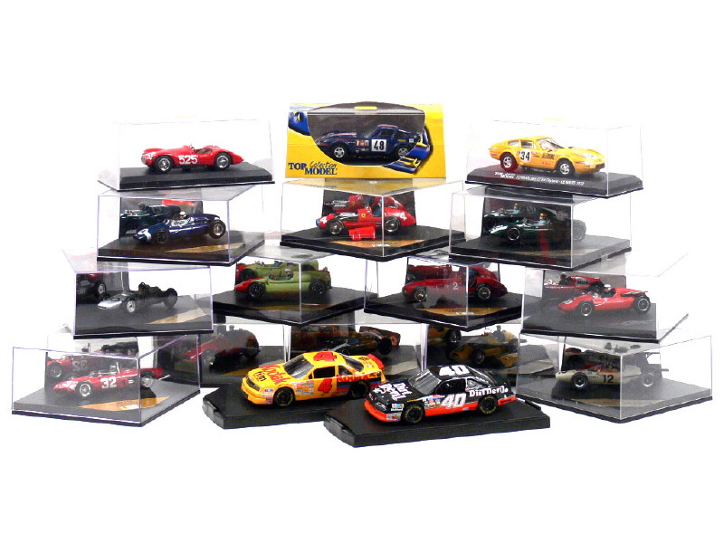 miniatures reproduisant les modèles : FERRARI, HONDA, COOPER-CLIMAX, CHEVROLET, PORSCHE, COOPER-FERRARI, MASERATI & PONTIAC - 3 modèles de la marque TOP MODEL - une surboîte non conforme