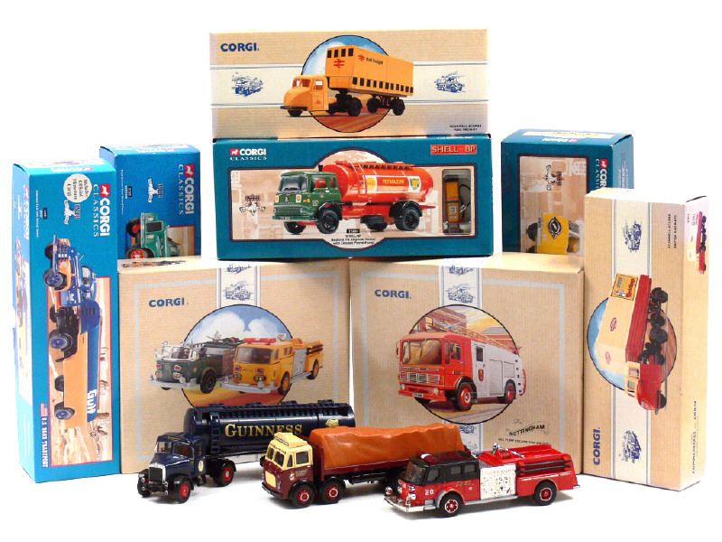 miniatures reproduisant les modèles : AMERICAN LA FRANCE, BEDFORD, DIAMOND T, AEC, LEYLAND, ERF, MACK & SCAMMELL - 2 véhicules regroupés dans un coffret