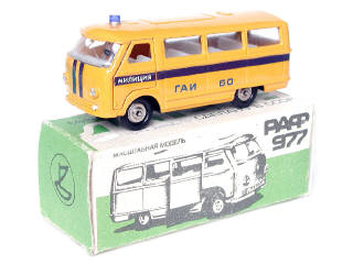 DIVERS (URSS) PAZ 977 Minibus police ocre, bandes bleues