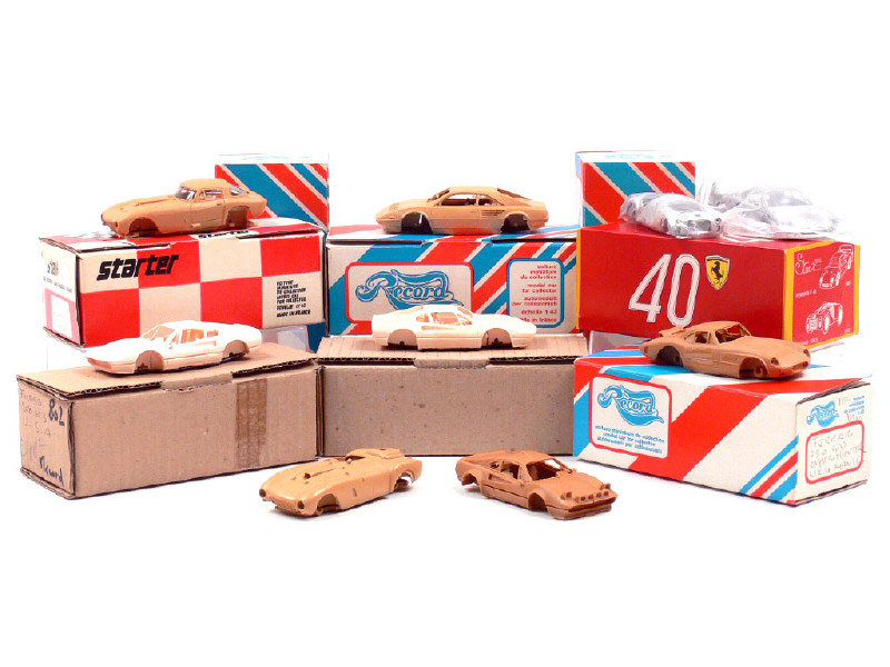 comprend : MONDIAL 8, 250 GTO EXPERIMENTALE (boîte en état 'c'), 308 GTB EUROP, 308 GTB, 375 N4, 375 Berlinette, 308 GTB version USA, 125 S & F40 - on y retrouve les marques : STARTER, RECORD & STAR AUTOMODELLI - 2 modèles en métal regroupés dans un coffret - 2 boîtes non d'origine - semblent complets