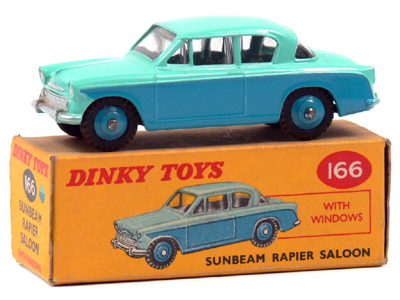 DINKY TOYS (GB) 166 SUNBEAM RAPIER Saloon bleu & turquoise, jantes bleues